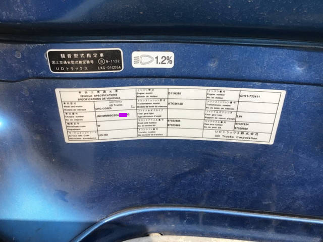 Make | UD TRUCKS | Engine Code | GH11 | Max Loading Capacity | 12,800kg |