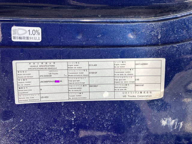 | Make | UD TRUCKS | Engine Code | GH11 | Max Loading Capacity | 38,640[11,500]kg |