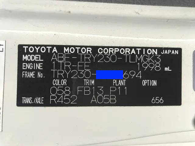| Make | TOYOTA | Engine Code | 1TR | Max Loading Capacity | 1,400kg |