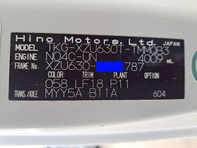 | Make | HINO | Engine Code | N04C | Max Loading Capacity | 3,000kg |