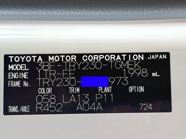 | Model Code | 3BF-TRY230 | Mileage | 18km | Fuel | Gasoline |