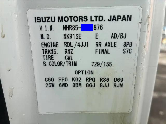 | Make | ISUZU | Engine Code | Max Loading Capacity | 1,500kg | |