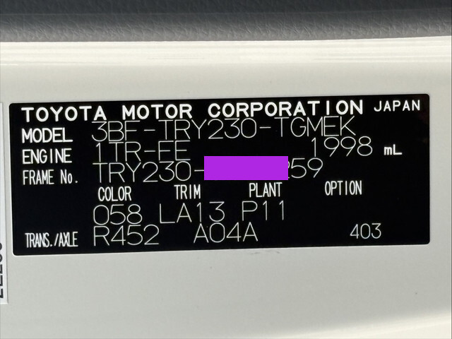 | Model Code | 3BF-TRY230 | Mileage | 18km | Fuel | Gasoline |