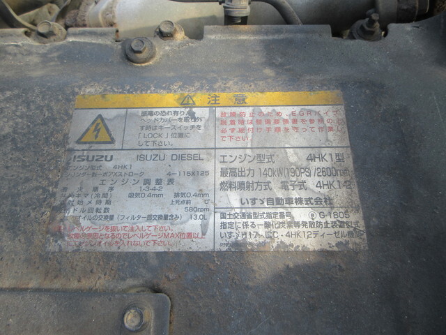 | Make | ISUZU | Engine Code | 4HK1 | Max Loading Capacity | 3,800kg |