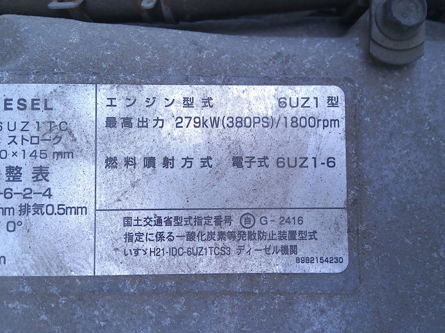 | Make | ISUZU | Engine Code | 6UZ1 | Max Loading Capacity | 14,100kg |