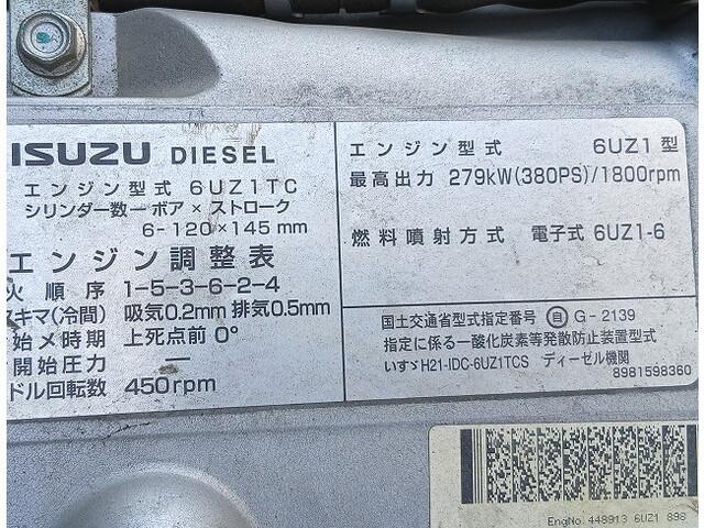 | Make | ISUZU | Engine Code | 6UZ1 | Max Loading Capacity | 13,800kg |